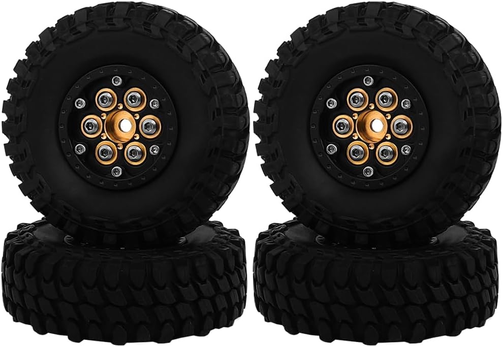 RZXYLRC 1.0 Brass Beadlock Tires Set 4PCS Tires for for 1/18 1/24 RC Crawler Car Axial AX24 SCX24 FMS FCX24 TRX4M Metal Upgrade