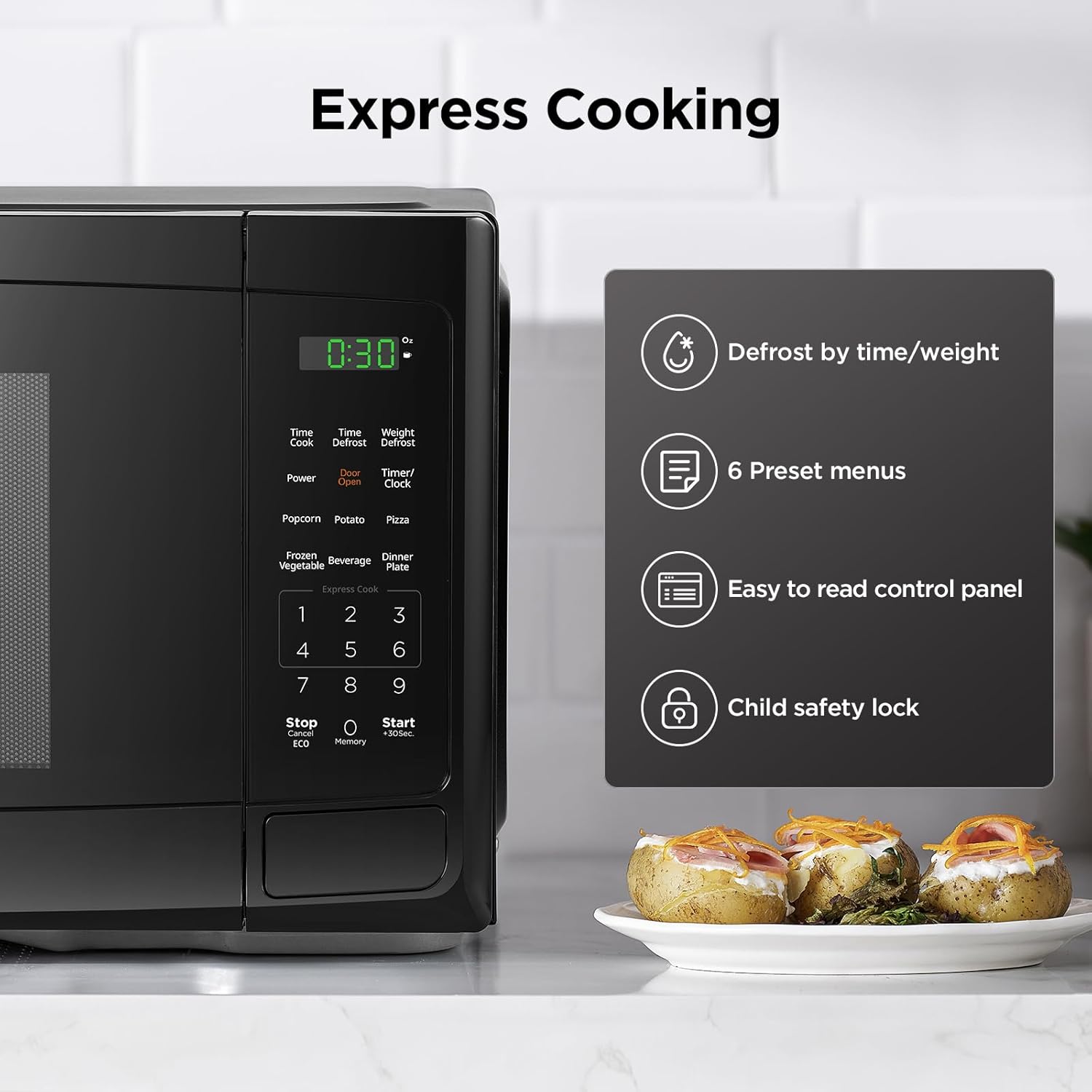 | Additional Features | Auto Cook, Child Safety Lock, Defrost, Digital Control, One Touch Button |