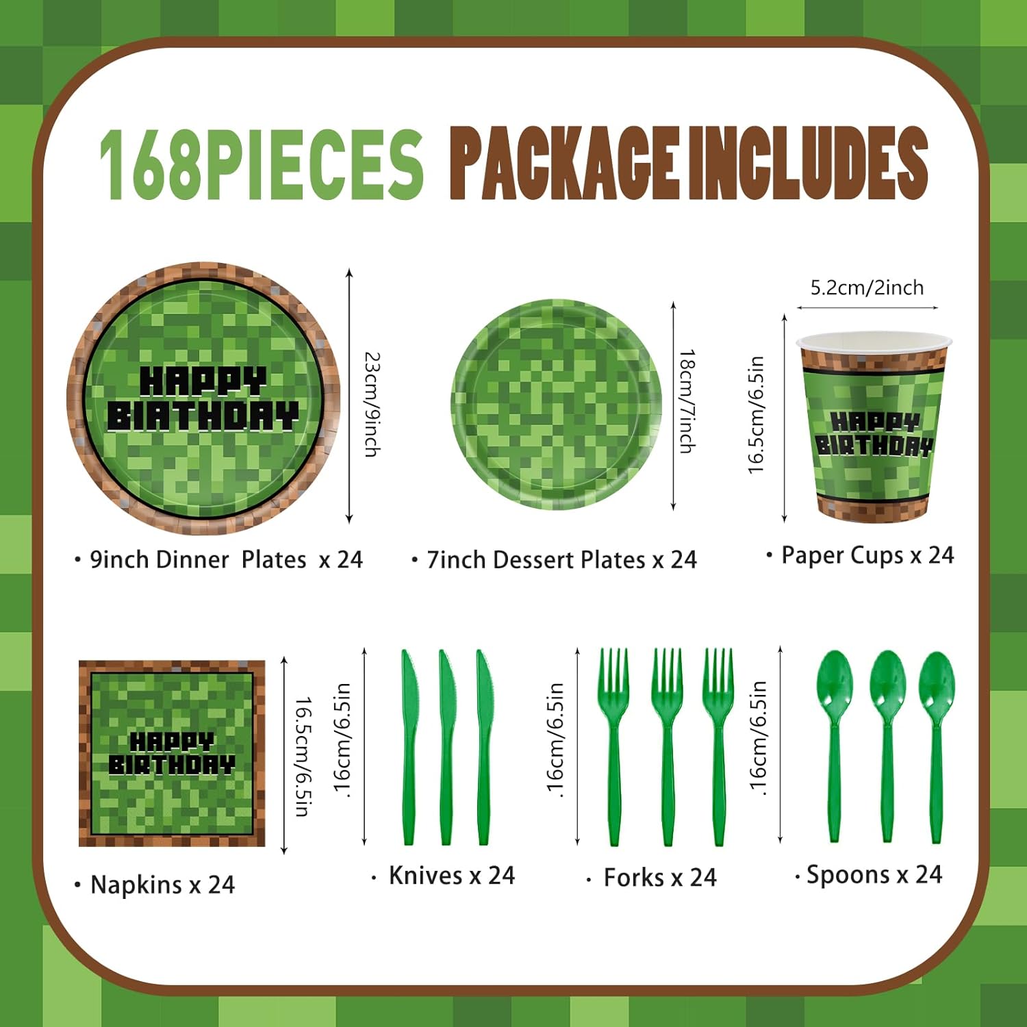 | Included Components | plates cups napkins knives forks spoons |