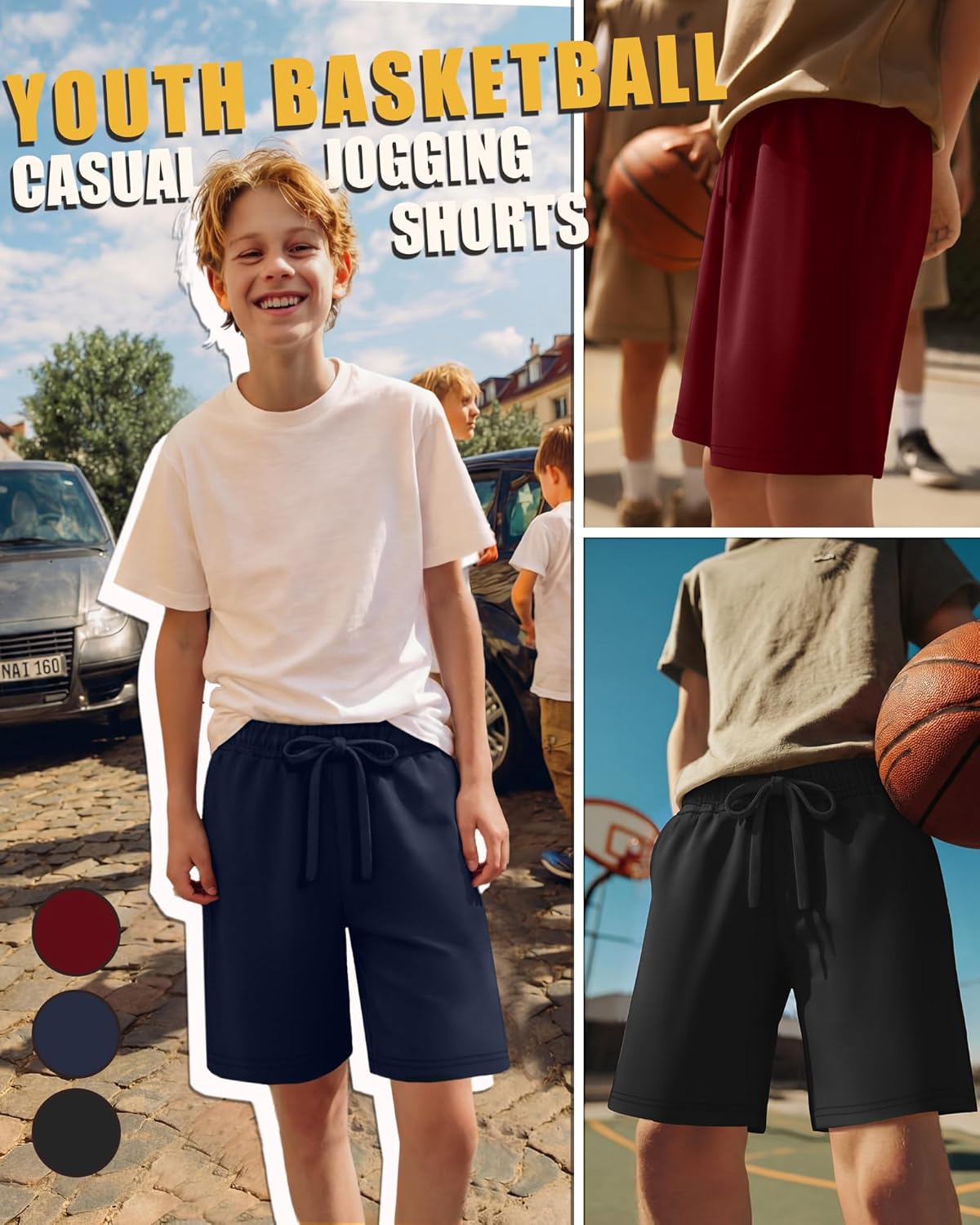 Features: Versatile Style Fit: This boy's sweat shorts can meet teens' wear needs, sufficient for daily changing, match well with sports tops, t-shirts, sneakers, It can also be a gift for your boy. Easy Care: Machine washed or hand washed in cold water on a gentle cycle, hang to dry, and will not shrink easily after multiple washes. Do not bleach. Specifications: Material: 60% Cotton, 35% Polyester, 5% Spandex Package includes: 3 Pack boys' jogger shorts Notes: Manual measurement, please allow slight errors on size. The color may exist a slight difference due to different screen displays