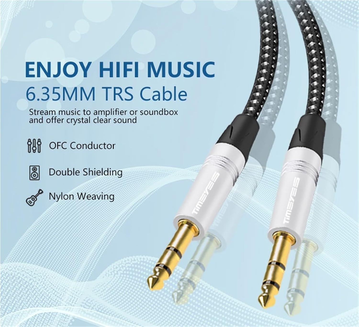 Connectors & Adapters==========Outer Diameter : 6.35mmApplication : Speaker,Microphone,Multimedia,AmplifierConnector B : male,Aux,Oxyacid Free Copper,Balanced InterfaceConnector A : male,AUX,Oxyacid Free Copper,Balanced InterfaceCertification : CE,FCC,RoHS,weeeOrigin : Mainland ChinaGender : male to maleFeature 1 : 6.35mm audio cableFeature 2 : 6.35mm jackFeature 3 : Audio Line