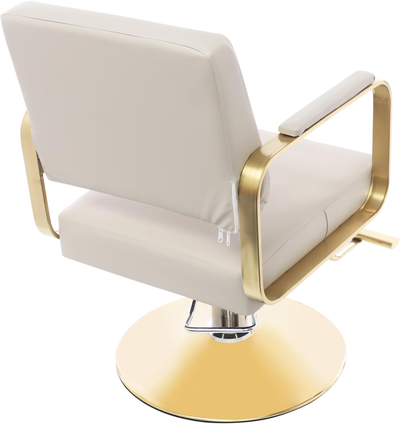 DescriptionOur barber chair features smooth 360° rotation and height adjustment, allowing your customers to enjoy more personalized and comfortable service. Its ergonomic backrest and armrests can fit the curves of the body well, even if sitting for a long time, without feeling tired. In addition, it is made of excellent materials for high durability and easy cleaning, making it an ideal choice for hair salons that pursue an outstanding service experience.Key FeaturesStrong Load-Bearing Capacity: The thick hydraulic pump and sturdy construction allow this product to easily handle a weight of 440.92 lbs, providing you with stable support and allowing you to use it with confidence.Adjustable Design: You can adjust its seat height(18.5-22in) with the adjustment lever, as well as rotate it 360° for more comfortable sitting and flexible use to meet the various needs of customers.DetailsStable Base: The circular base with a grippy pad ring allows for higher stability while avoiding scratching the floor.Foot Pedal: It is not only shiny and beautiful but also has a rational structure that allows you to place your feet on it to relax your feet.ApplicationThis product is suitable for homes, beauty salons, nail salons, barber shops, hair salons, spas, etc.SpecificationsProcess: Electroplating Material: Stainless Steel, PVC, SpongeMounting Type: Floor StandingAssembly Required: Yes360° Rotation: Yes Load-bearing Capacity: About 200kg/440.92 lbsTotal Adjustable Height: 81-90cm/31.9-35.4inAdjustable Seat Height: 47-56cm/18.5-22inSeat Size(L*W): 57*60cm/22.4*23.6inSeat Thickness: 15cm/5.9inBackrest Height: 54cm/21.3inArmrest Spacing Width: 50cm/19.7inPackage Size: 57*55*37cm/22.44*21.65*14.57inGross Weight: 18.35kg/40.45 lbsNet Weight: 16.75kg/36.93 lbsNotes1.Please check the size carefully before ordering.2.Please use the product within its weight capacity to avoid damage.