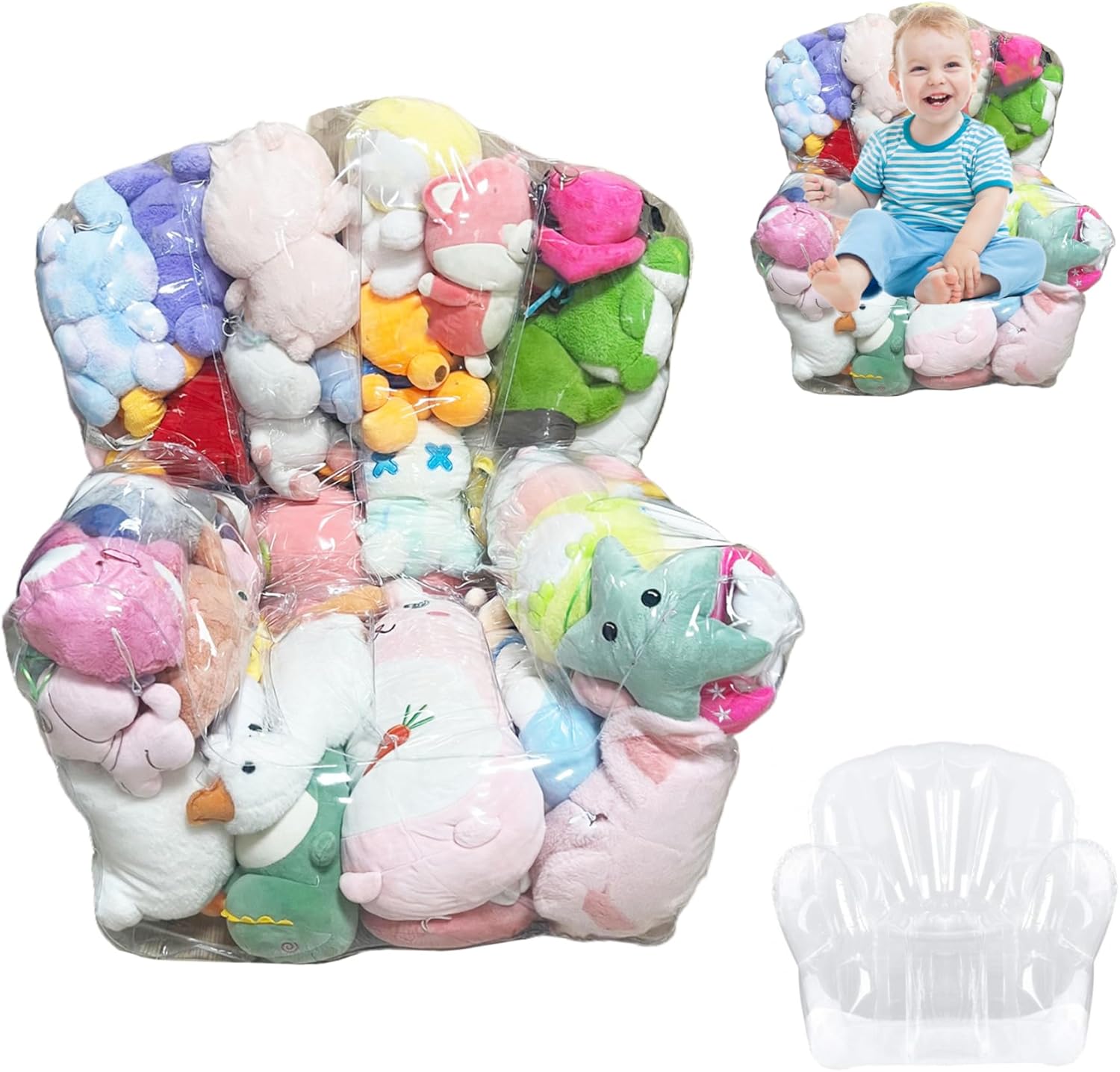 Description: Tired of tripping over a plushie paradise? Our Bean Bag Stuffed Animal Storage is the revolutionary solution for organizing your child's room! This isn't just a storage bag; it's a stuffable armchair that magically transforms clutter into cool, functional furniture. Simply unzip the reliable, waterproof PVC shells and let your kids fill it with their cherished collection of stuffed animals. The strong zipper ensures everything stays securely inside. Once full, it becomes a cozy and unique seat for reading or relaxing. The transparent design lets all their favorite friends be part of the decor, making clean-up fun and rewarding. Give your family the souvenir of a tidier space and a happy child with this versatile must-have organizer. Features:. Bean Bag Stuffed Animal Storage. -Color: Clear. -Material: PVC. -Size: about 100*90*95cm/39.4*35.4*37.4inch. Note: Manual measurement, please allow slight errors on size. The colors may exist slight difference due to different screens. Package Including 1Pcs Bean Bag Stuffed Animal Storage