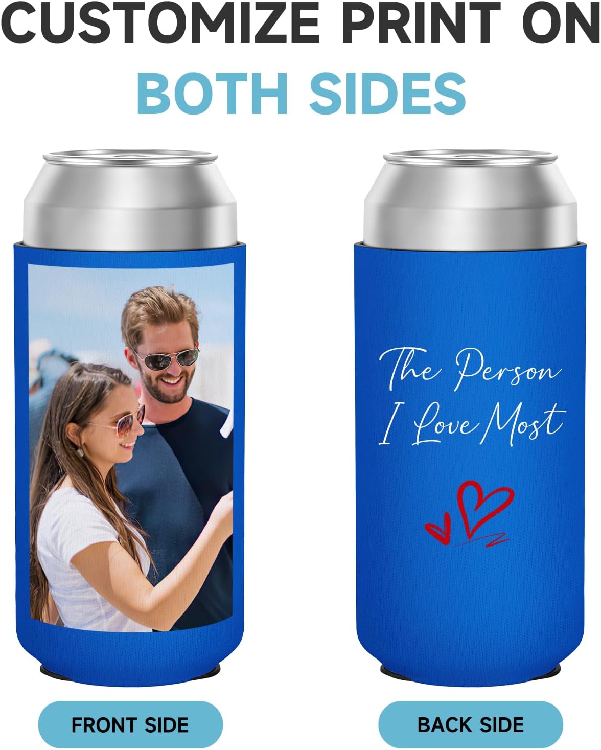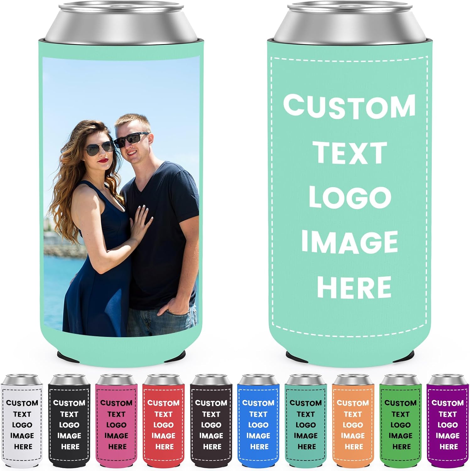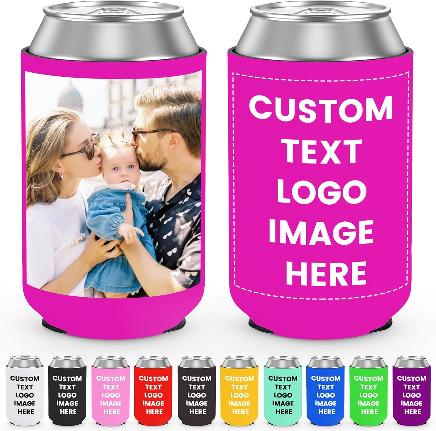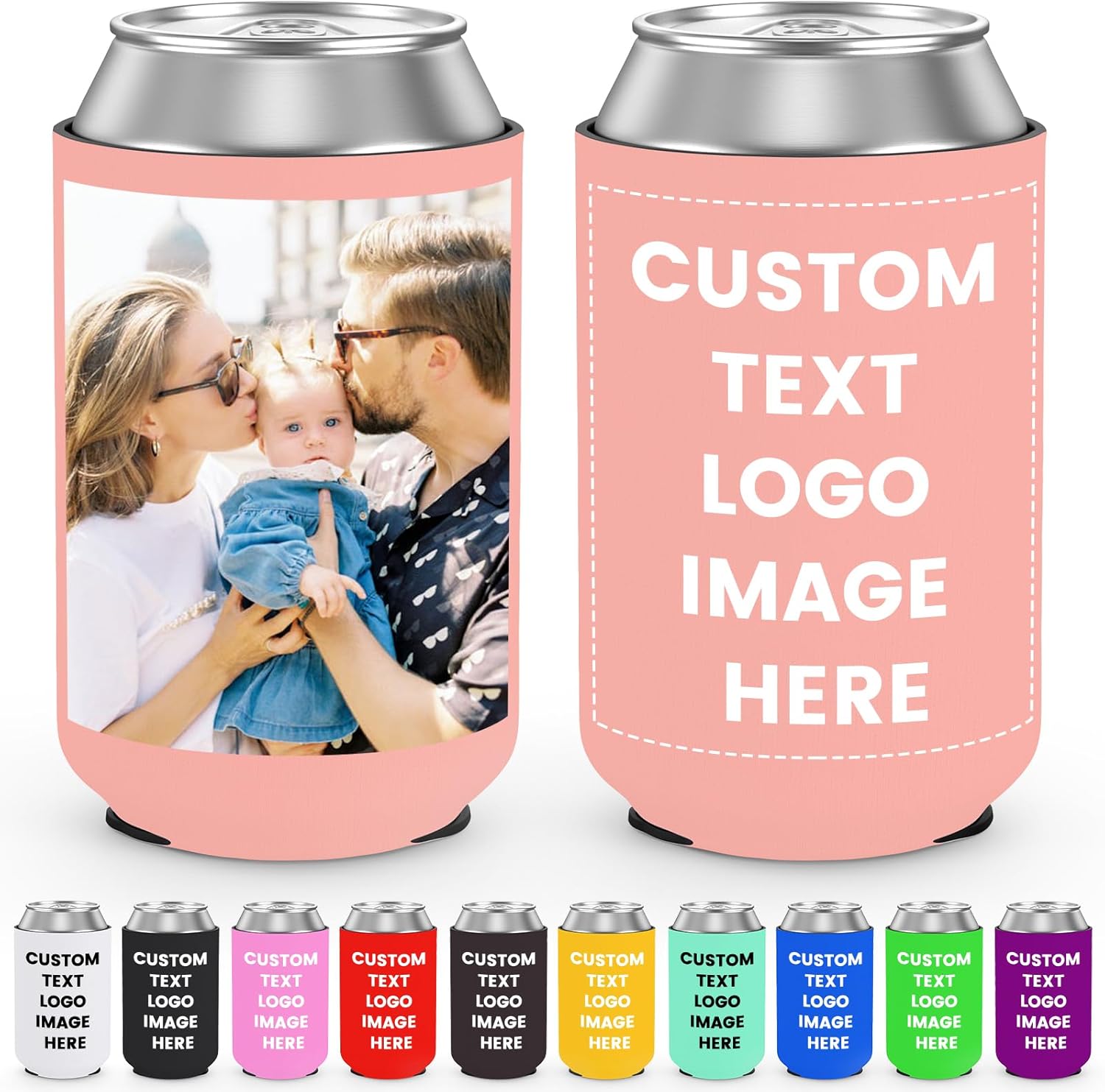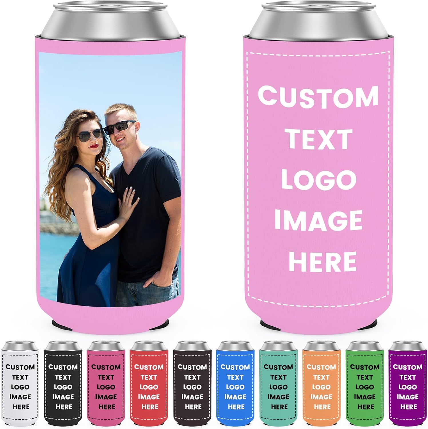 Custom Can Coolers Sleeves 50 Pack, Bulk Personalized Insulated Neoprene Beer Soda Can Drink Bottle Holder with Logo Photo Text for Wedding Party Anniversary Decorations