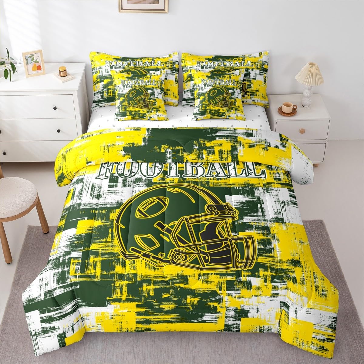 Why choose us Everyone has their own preferences; we develop different styles and different designs to suit the hobbies and aesthetics of different people; we look forward to bringing more joy and fun into your life; special design for special you; it's not just a simple home product, it's a way of life Brighten up your bedroom with this bed linen set; this bright and colourful bedding set features vibrant colours and special print pattern; turn the reversible duvet set over for a new look against a modern geometric background Convenient to use due to polyester which is super soft and comfortable; this all year round bedding is designed to be lightweight and breathable for a good night's sleep; a practical product for homes, dormitories, hotels, guest rooms Twin bedding set includes 1 twin comforter: 68"x90", 1 fitted sheet: 39"x75"x16", 1 flat sheet: 66"x96", 2 Pillowcases: 20"x30", 2 square pillow covers: 18"x18", perfect for a twin size bed. Full bedding set includes 1 full comforter: 79"x90", 1 fitted sheet: 54"x75"x16", 1 flat sheet: 81"x96", 2 Pillowcases: 20"x30", 2 square pillow covers: 18"x18", perfect for a full size bed. Queen bedding set includes 1 queen comforter: 90"x90", 1 fitted sheet: 60"x80"x16", 1 flat sheet: 90"x102", 2 Pillowcases: 20"x30", 2 square pillow covers: 18"x18", perfect for a queen size bed. King bedding set includes 1 king comforter: 104"x90", 1 fitted sheet: 78"x80"x16", 1 flat sheet: 90"x106", 2 Pillowcases: 20"x36", 2 square pillow covers: 18"x18", perfect for a king size bed. In addition to this comforter set with sheets, there are curtains, area rugs, shower curtains, blankets and other furniture with the same design waiting for you to explore. Whether it is for birthday of your family or friends, relatives, or just for yourself, the item should be interesting and authentic.