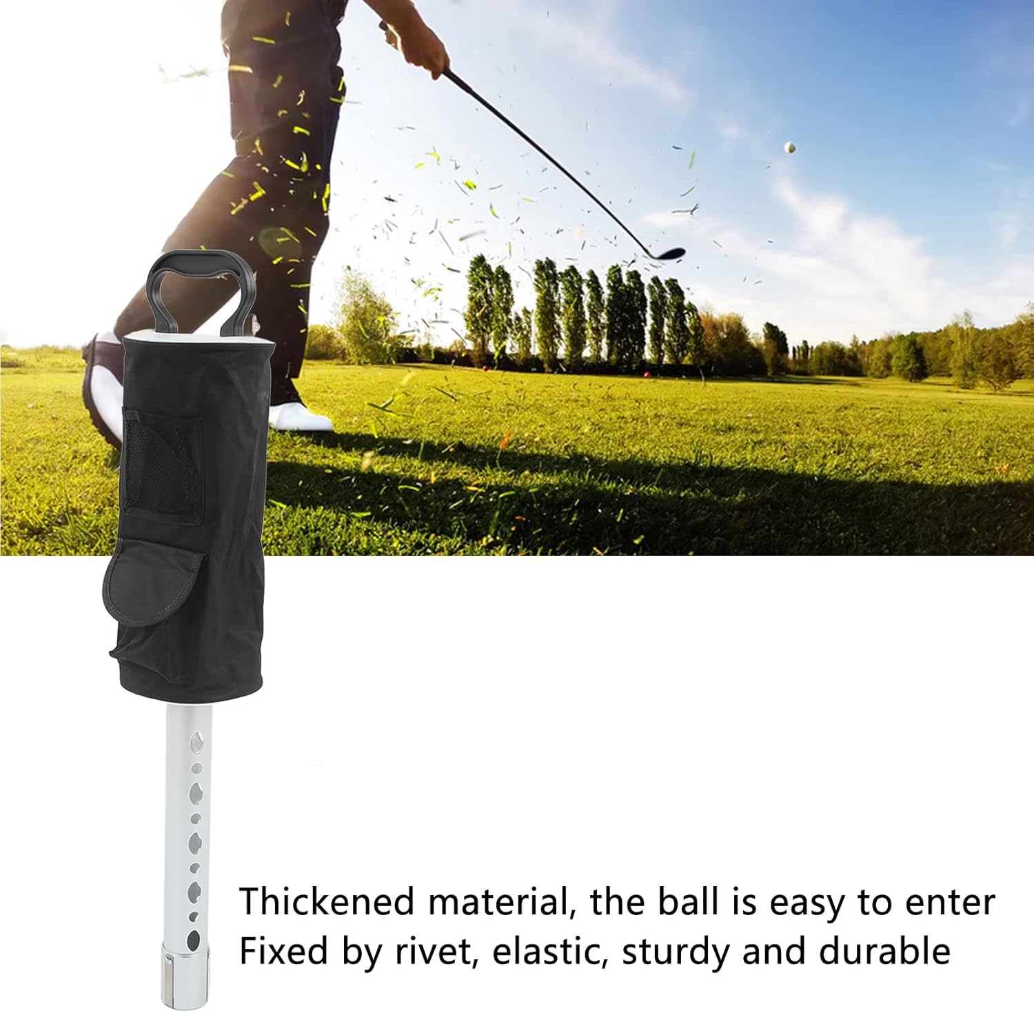 Item Type: Golf ball retrieverMaterial: Plastic handle, nylon bag, aluminum alloyWeight: Approx. 1150g/40.6ozFeatures: people do not need to bend down to pick up the ball, and the golf ball retriever can be operated with one handSize:Total Length: 82cm/.3inBag Length: 36cm/14.2inBag Width: 15cm/5.9inTube Diameter: 5cm/2inPackage List:1 xGolf Ball RetrieverNote:Please note that the new type and old type of this product will be sent randomly, and make sure you will not mind before ordering.