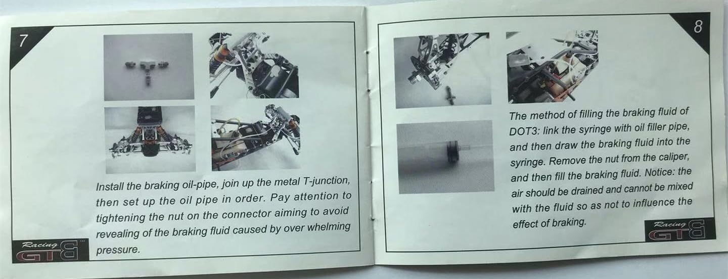 GTB new CNC front wheel brake hydraulic oil / hydraulic brakes For HPI BAJA 5B/5T/5SC innovative design nice Easy to use CNC precision production This section front wheel hydraulic brakes, dual piston design, XL porous disc brake cooling, flat precision 0.005mm. Highly efficient braking. 1: calipers combined caliper cover three-dimensional design, so the whole is more dynamic fashion. 2: caliper piston seal with double seals by a Y-shaped O-ring seals and a combination hydraulically sealed to prevent excessive pressure when braking and leak, causing brake failure. 3: Optional brake pads use high temperature, wear-resistant epoxy fiber composite material made of CNC, parallelism 0.05mm, effective control of the gap. 4: The brake discs in the past we used carbon fiber production, due to the uneven surface error is large, we use the high-carbon steel flat grinding, control parallelism within 0.005mm, prompting a smooth combination of friction between the brake pads and brake system disc move to increase the braking force and arc-shaped slot design approach, increasing friction and ventilation, reduce friction and heat deformation. 5: The entire system has seven hydraulic fittings connected together, connected to the main pump 3 through the taps, CNC custom 6:3 of high temperature resistance, corrosion resistance tubing is the lifeline of the entire system. 7: GTB brakes the brake master key parts are dual piston pump seal design, a combination of two seals together. The main pump combination, cover with an empty nut design, the effective exclusion of air inside, enhanced braking force.