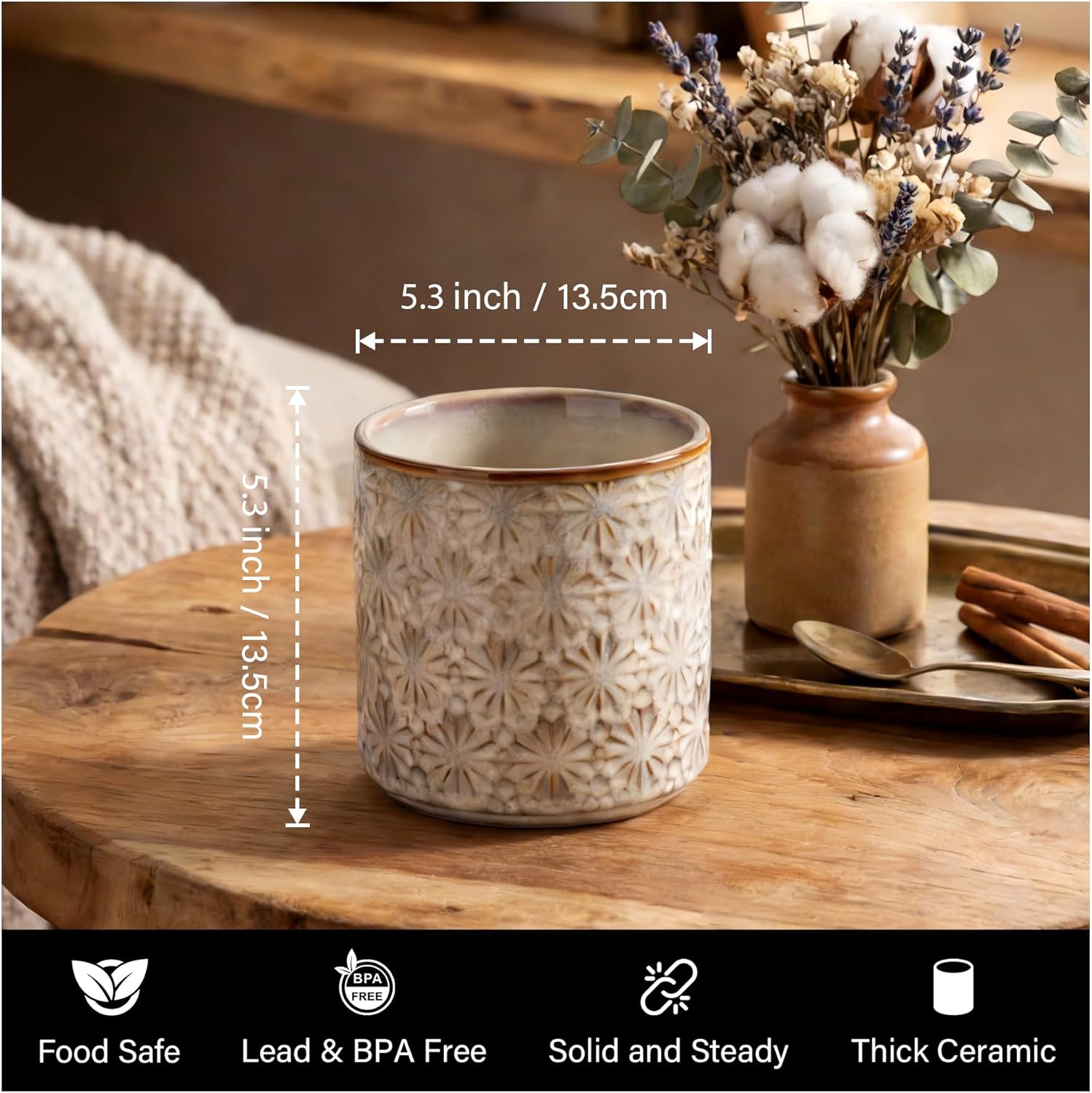 Kitchen Utensil Holder - 5.3in Utensil Holder For Kitchen Counter - Ceramic Cooking Rustic Farmhouse Decor - Set Of 2