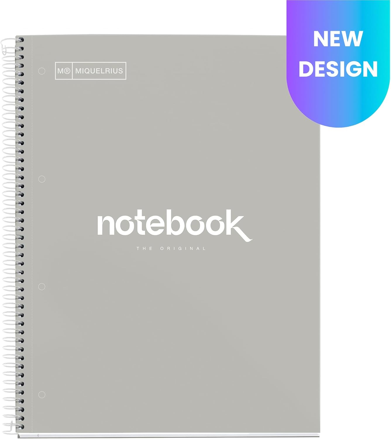 Large A4 (210 x 297mm) spiral notebook with hard cover and paper with 5 x 5mm grids. White sheets with outer and inner margin in 5 colours, allowing easy division by subject or subject in the same notebook. 120 sheets of high quality paper with extra high coverage. The 90gsm weight prevents ink or ink from showing through and is perfect for use on both sides. Micro-perforated sheets for easy separation and 4 hole punched holes for filing in a binder. 5 intense colours with 24 sheets per colour. Each sheet is equipped with a margin, heading header and a grid in one of the colours. High quality colour printing for easy writing and reading. Cover made of extra stiff, matt laminated, laminated cardboard that serves as a desk mat. The Coilock spiral prevents snagging and allows for flat striking. Colour: grey. Notebook made from sustainable paper with FSC MIX CREDIT certification, which guarantees that the paper comes from ecologically sustainable forests. Made in Spain.
