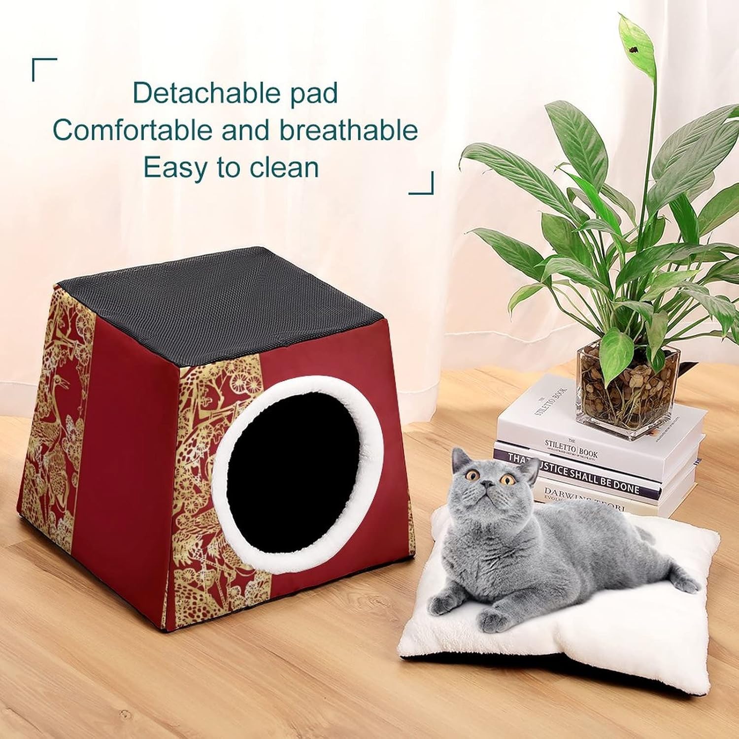 Features:● Cube-shaped Kitty House/Cat Condo/Cat Scratching Toy● Cat House/Cat Bed/Cat Sofa 3-in-1 design● Personalized Cute Fashion Printing● Comfortable and Breathable● Non-slip Bottom Design● Removable Cushion Pad● Easy to assemble and cleanWe love pets, pets love LafalPer printed kitten house.A warm gift for your cat!Enjoy your rest time with your lovely pets!