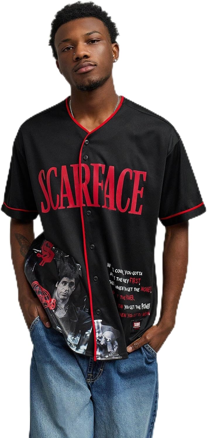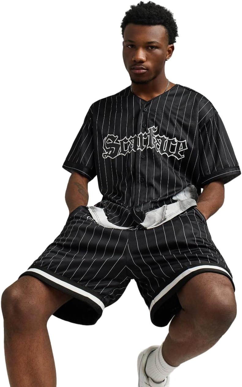 | Color | Scarface Pinstripe Baseball Jersey - Black |