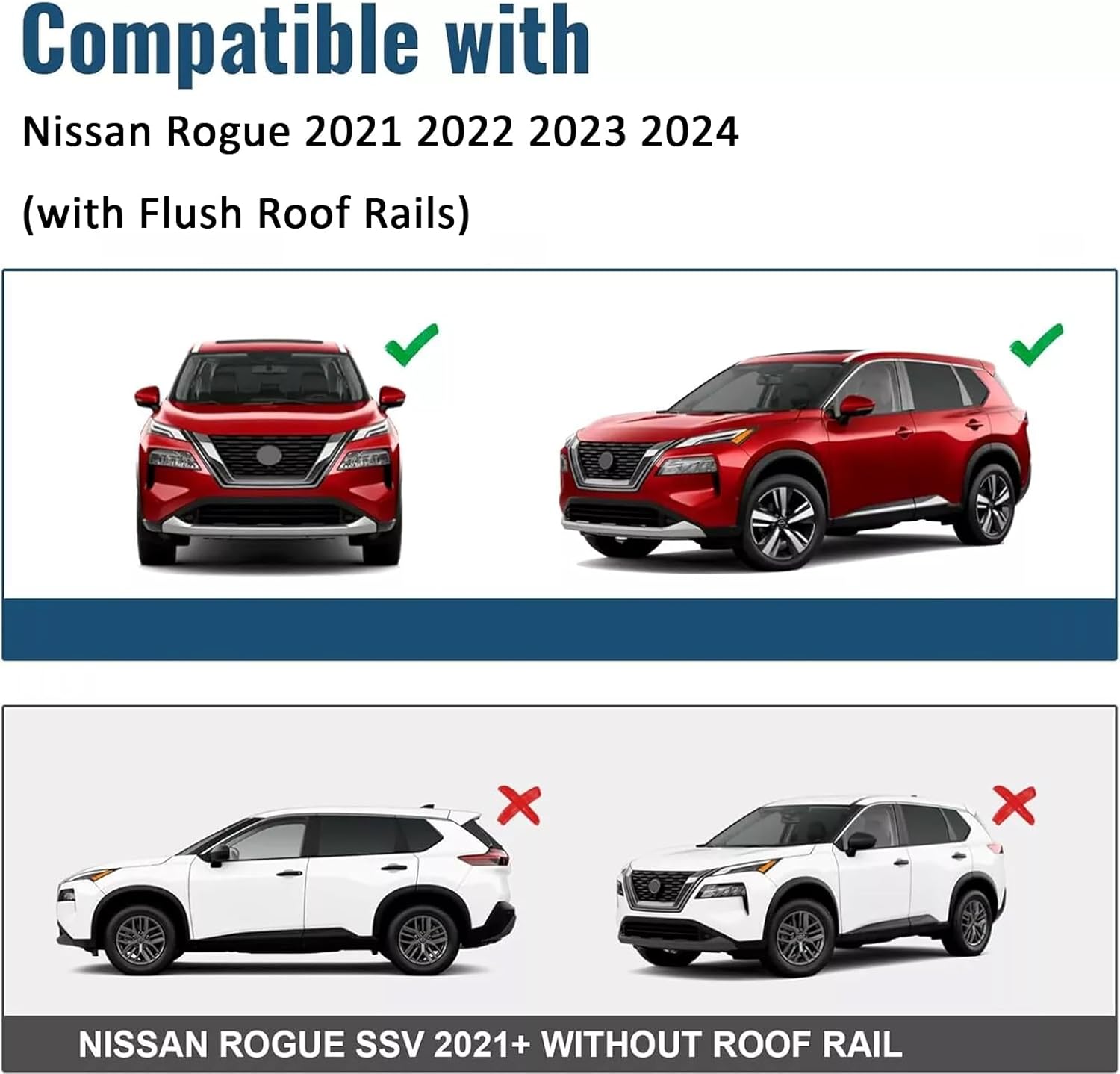 • 【Attention】: NOT fit Nissan Rogue SSV 2021-2024 without roof rail, please make sure it fits your vehicle before purchasing