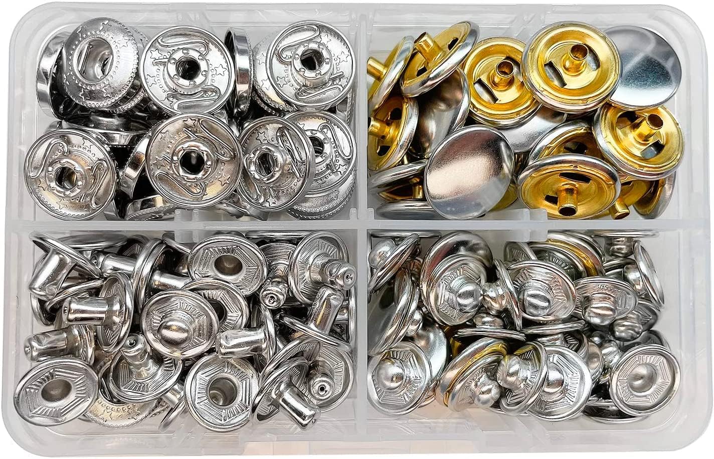 Size: Cap diameter 15mm(3/5") Material: Brass and nickel-plated steel Color: Gun black Quantitys: 40 set, each set of Snap includes 4 parts: 2 caps 1 stud and 1 socket Great for Purses, Bags, Clothes, Sewing Craft Handbag, Wallet, decorating your fabric, Shirt, shoes Snaps are made of brass and nickel-plated for added durability