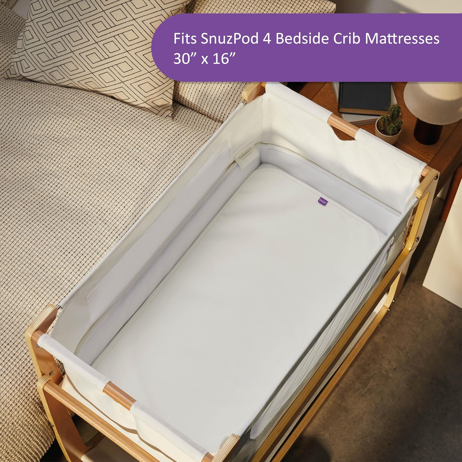 The SnuzPod 4 Bedside Crib Mattress Protector is a safe and comfortable sleeping solution for your precious little one.Suitable from birth to approximately 6 months, this crib mattress cover creates a comfortable sleeping environment for your baby to enjoy a refreshing sleep. Its super soft, luxurious cotton absorbs any little night time accidents, while a 100% waterproof layer and the breathable design wicks moisture away from your baby, keeping them clean and dry all night long. It's also hypoallergenic, perfectly fits SnuzPod 4 Bedside Crib mattresses, and is machine washable for time-saving cleaning. Snuz was created with the vision of providing stylish sleep solutions for parents, by helping their little ones get a good night’s sleep. Our superior quality products and stylish designs make parents proud and nap times as stress-free as possible. From nursery furniture, moses baskets, bedding and sleep aids to sleeping bags and mattresses, we have all the essentials for newborns through to childhood. Sleep … every parent wants more of it! UK award winning, tailor-made for the USA.