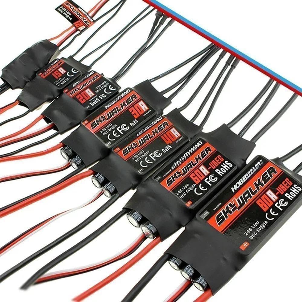 item Name:HobbywingSkywalker 12A 20A 30A 40A 50A 60A 80A ESC Speed Controler 20A V2: Continuous/Peak Current:20A/40A Number of battery cells:2-3S (Lipo) BEC Mode: Linear BEC Output: 5V3A Size:45*23*8mm Net Weight: 19g 30A V2: Continuous/Peak Current:30A/50A Number of battery cells:3-4S (Lipo) BEC Mode: Switch mode BEC Output: 5V5A Size:60*25*8mm Net Weight:33g 40A V2: Continuous Current: 40A/60A Number of battery cells:3-4S Lipo BEC Mode: Linear BEC Output: 5V5A Size:60*25*8mm Net Weight: 36g 50A V2: Continuous output: 50A/70A Number of battery cells:3-4S Lipo BEC Mode: Switch mode BEC Output: 5V5A Size:60*25*8mmg Weight: 36g 60A V2: Continuous output: 60A/80A Number of battery cells:3-6S Lipo BEC Mode: Switch mode BEC Output: 5V7A Size:73*30*12mmg Weight: 68g 80A V2: Continuous output: 80A/100A Number of battery cells:3-6S Lipo BEC Mode: Switch mode BEC Output: 5V7A Size:85*36*9mmg Weight: 79g 100A V2: Continuous output: 100A/120A Number of battery cells:3-6S Lipo BEC Mode: Switch mode BEC Output: 5V7A Size:85*36*9mmg Weight: 92g Package Included: 20A/30A/40A/50A/60A/80A ESC For Hobbywing SKYWALKER x1