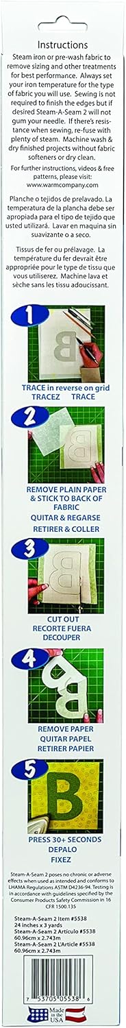 The Warm Company Steam-A-Seam 2 Double Stick Fusible Web makes quilting, sewing, and crafting projects easier and more precise. With adhesive on both sides, fabrics can be temporarily positioned and adjusted until pressed with an iron, creating a permanent, secure bond.