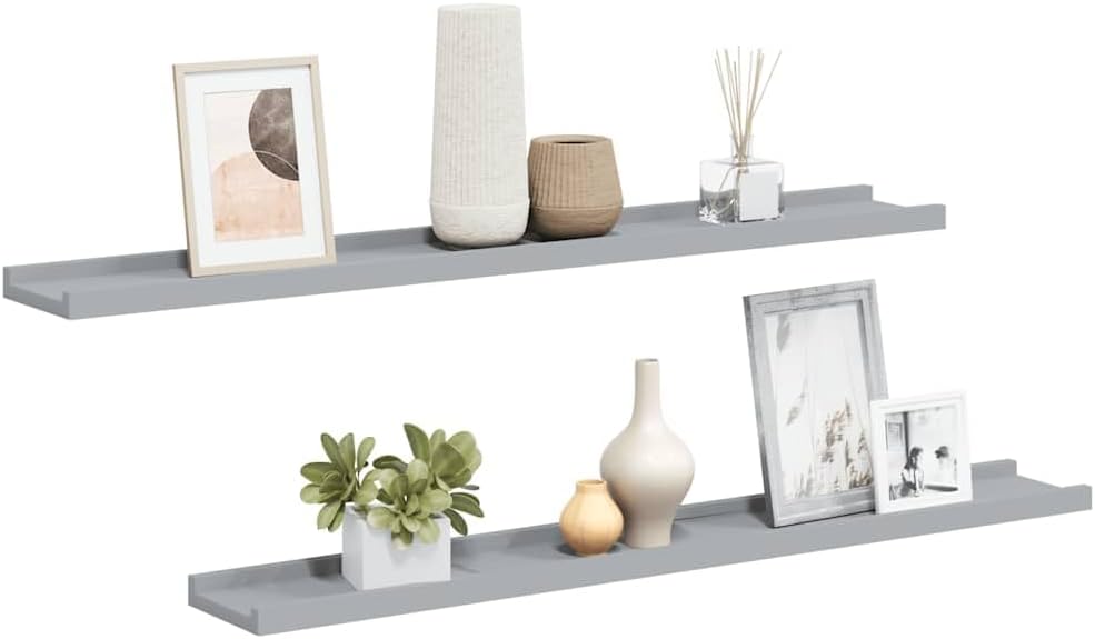 | Product Name | vidaXL Picture Frame Ledge Shelves, Set of 2, Black, Wall-Mounted, U-shaped, Sleek Design, 15.7"x3.5"x1.2", Durable Lacquered MDF Board, for Displaying Photos & Decorative Items |