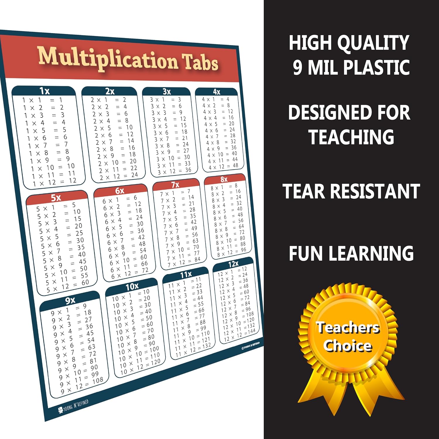 Two Great posters for learning multiplication. One in chart in classic grid style and one in tabular form clearly visible from a distance. will make a great addition for classroom and school room or bedroom or nursery.