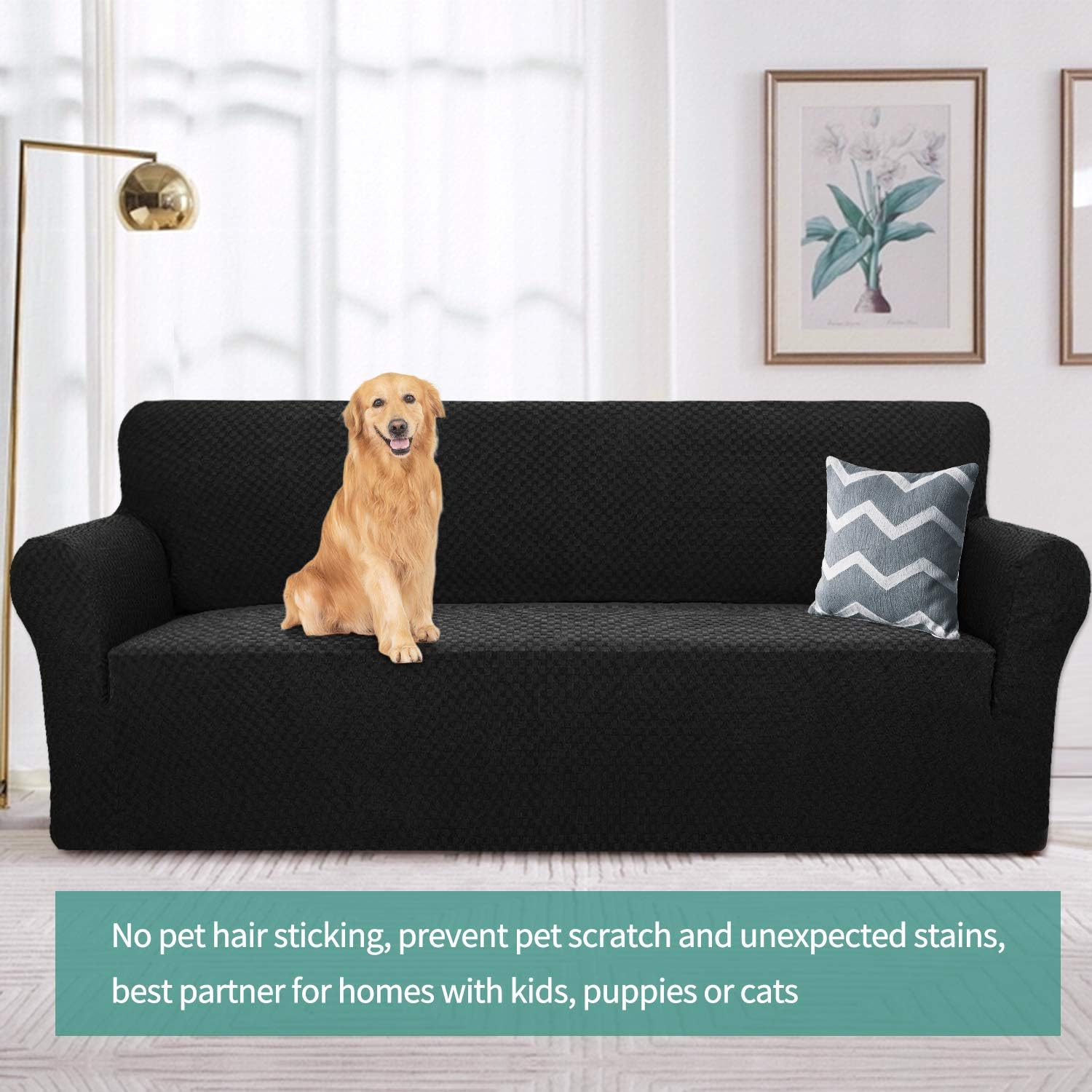 YEMYHOM stretch sofa cover / pet couch covers for 3 cushion couch are made by form fitting stretch fabric. Easy to put on and very soft, cozy, conformable to sit on. Highly recommended for cloth couch and leather couch. This elastic sofa slipcover / couch slipcover comes in one piece which goes over the whole sofa with anti-slip foam rods, perfect to protect your oversized sofa / 3 seat sofa / love seat and arm-chair from kids, pet hairs, stains etc. Not only as a furniture protector to ensure your couch lasting for years to come, but also add a neat new look or refresh your existing living room / home decor. This dog couch cover protector is machine washable, and it is a great couch covers for dogs, a protective pet friendly slip cover for your home. We also have sofa covers for 2 cushion couch, there is extra large couch cover, sofa covers, loveseat covers, chair covers for your choose.